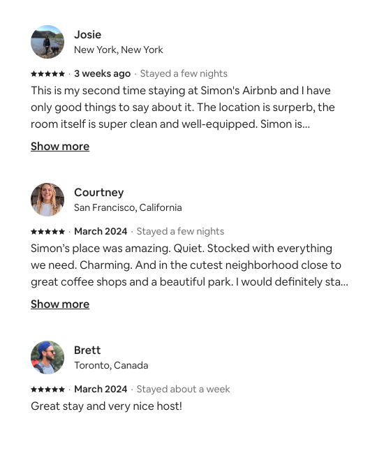 Follow our instruction guides to come in and out of the building. Our code access system is easy to use and personalized to you. Please take some time to read our policies and make your stay self-suficient and comfortable.